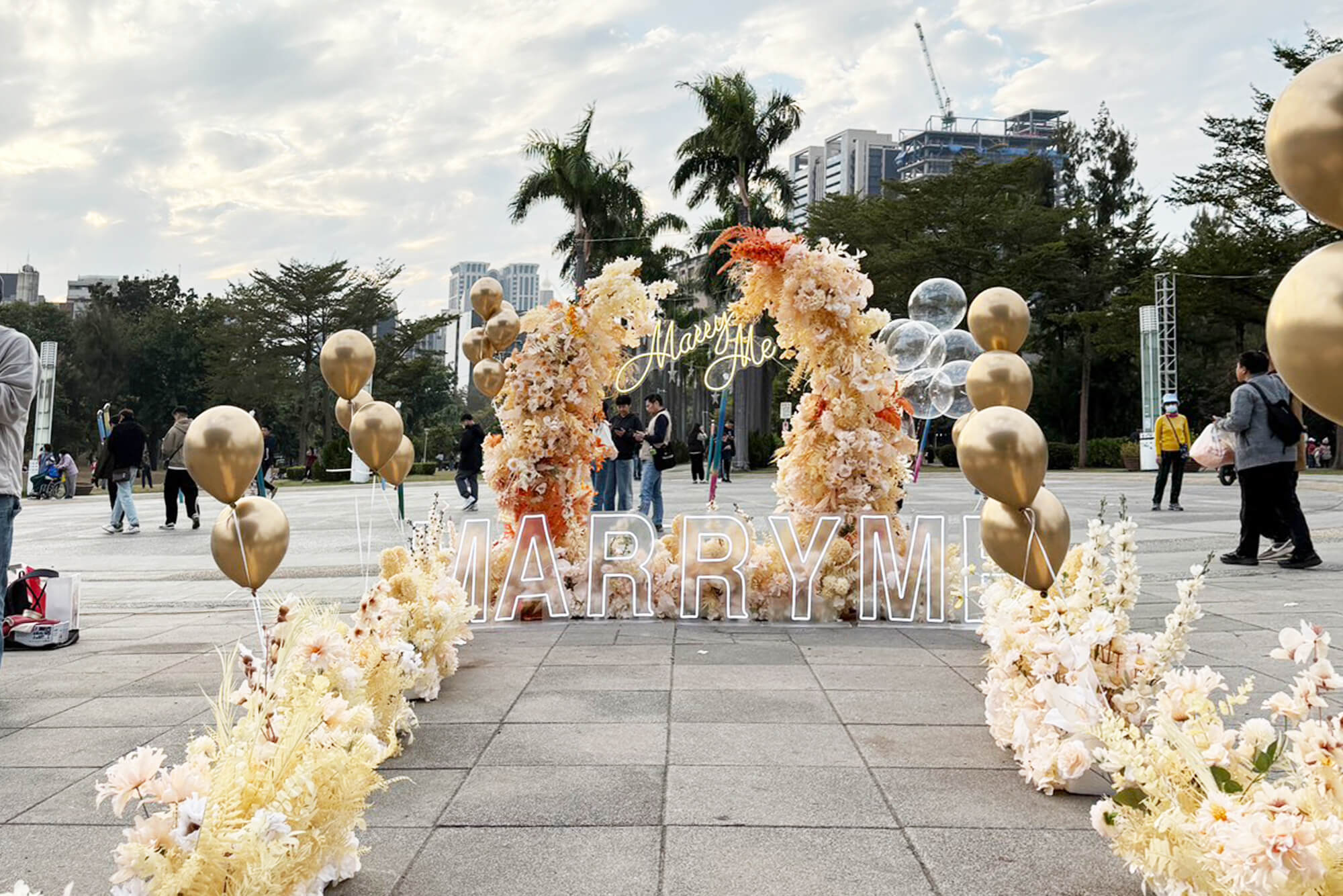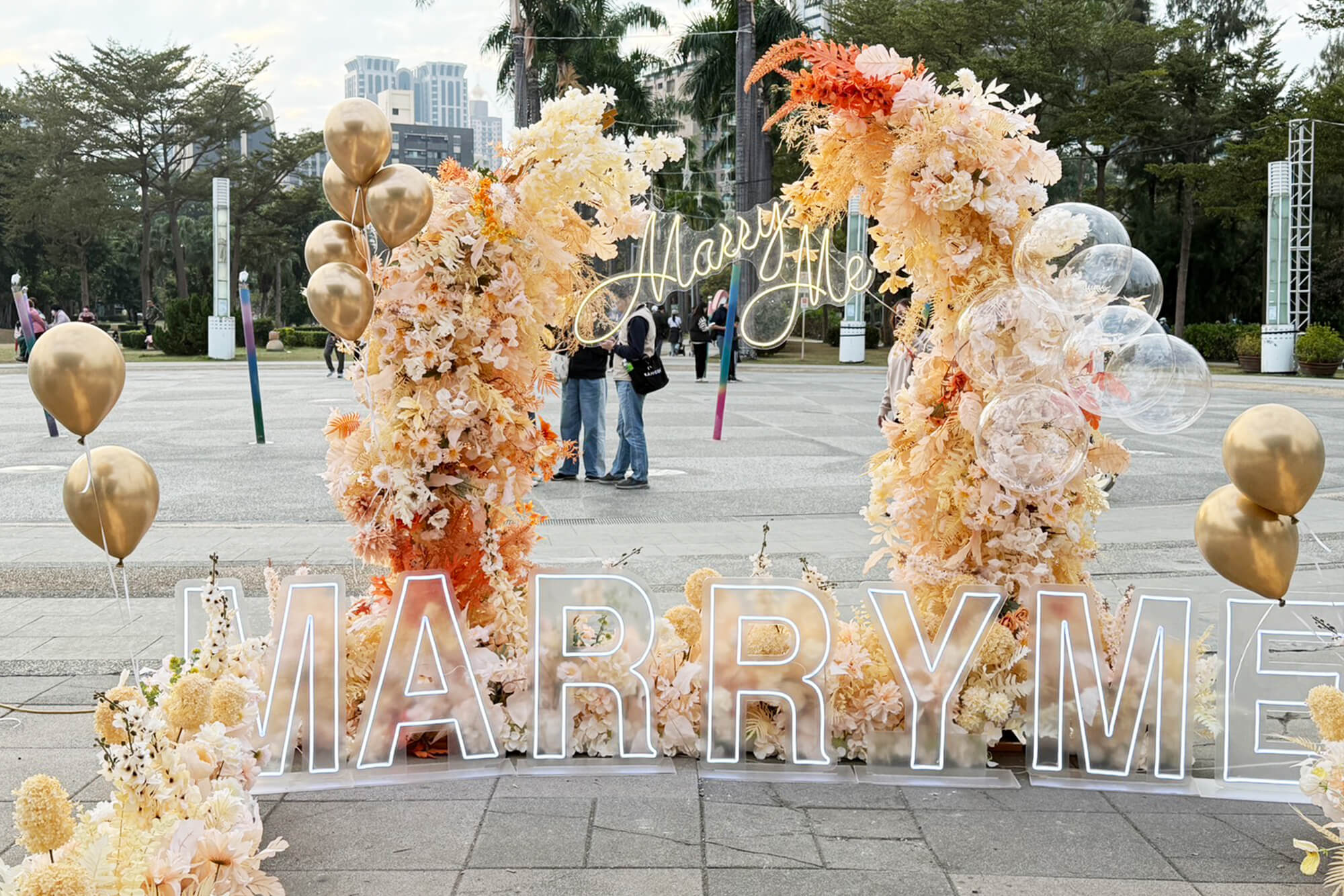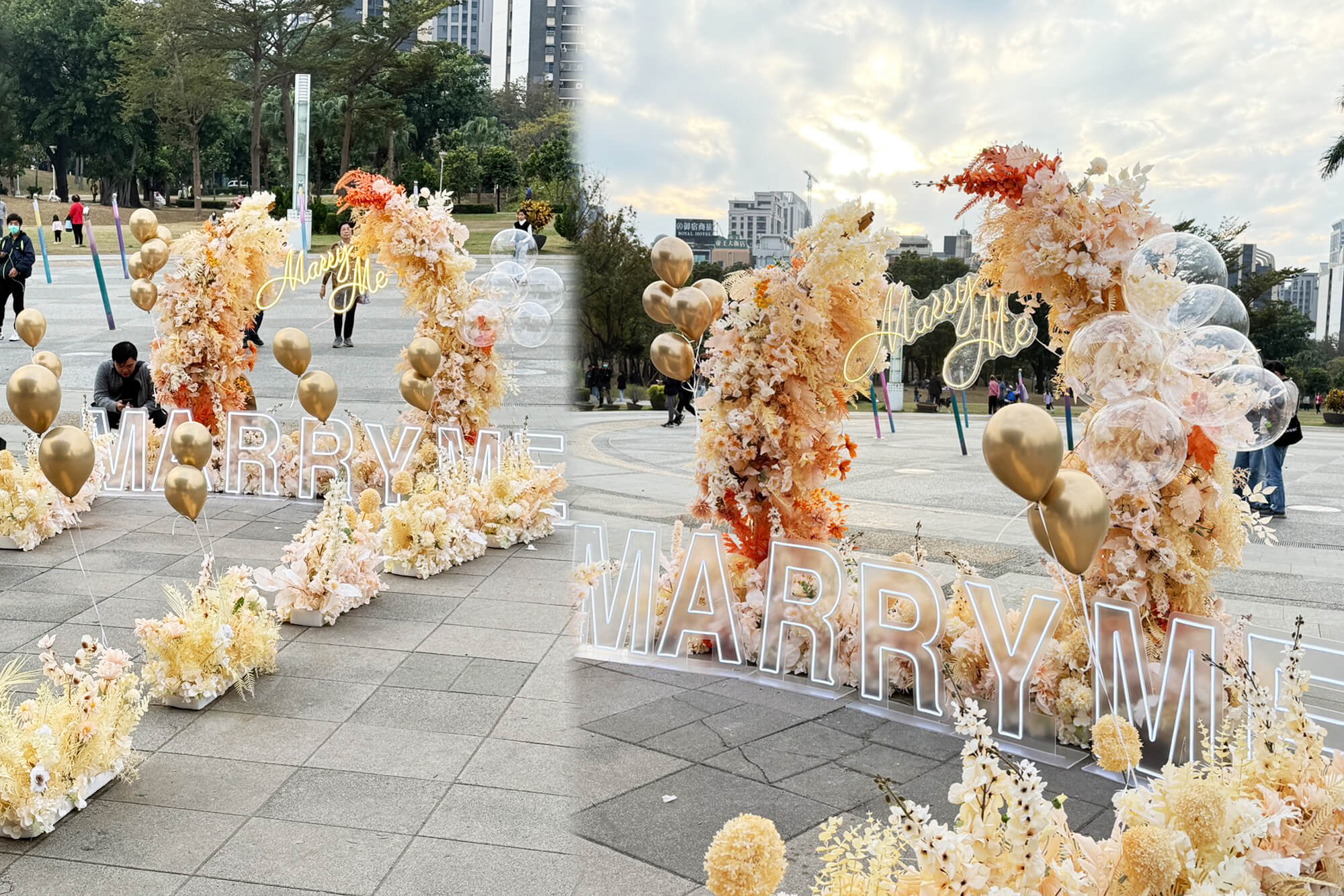 高雄中央公園|香檳色系・客製走道・花藝與氣球整合